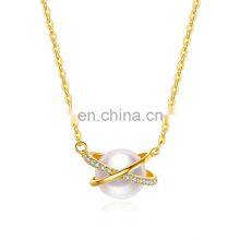 Fashion 925 Silver Jewlery 18k Gold Plated Freshwater Pearl Necklace Women