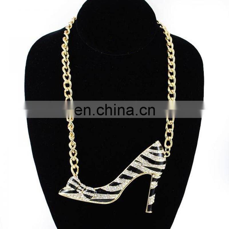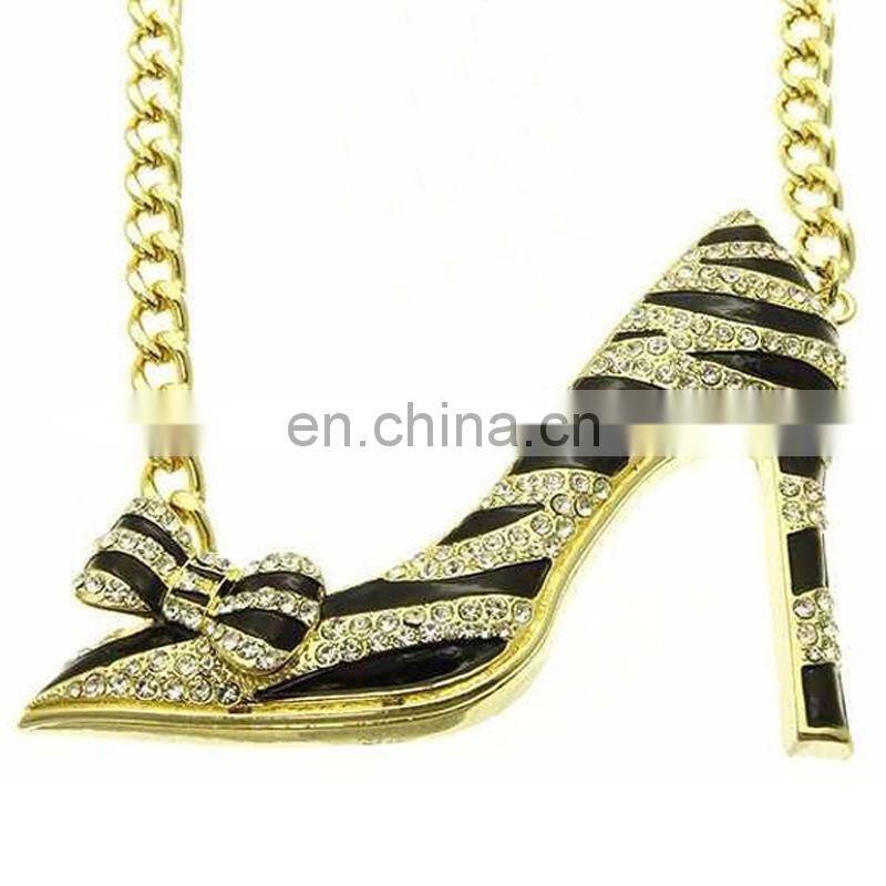 Women's Fashion Stainless Steel Custom Enamel Jewelry High Heel Shoes Charms Sweater Necklace