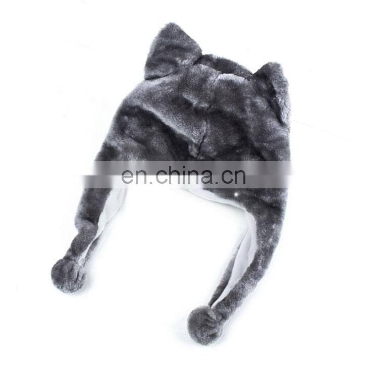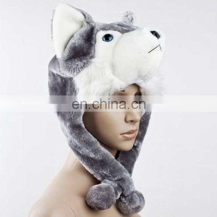 Cartoon Animal Wolf Cute Fluffy Plush promotional Cap Hat