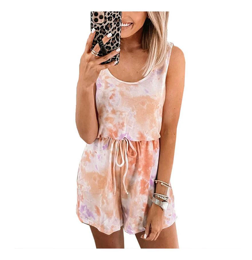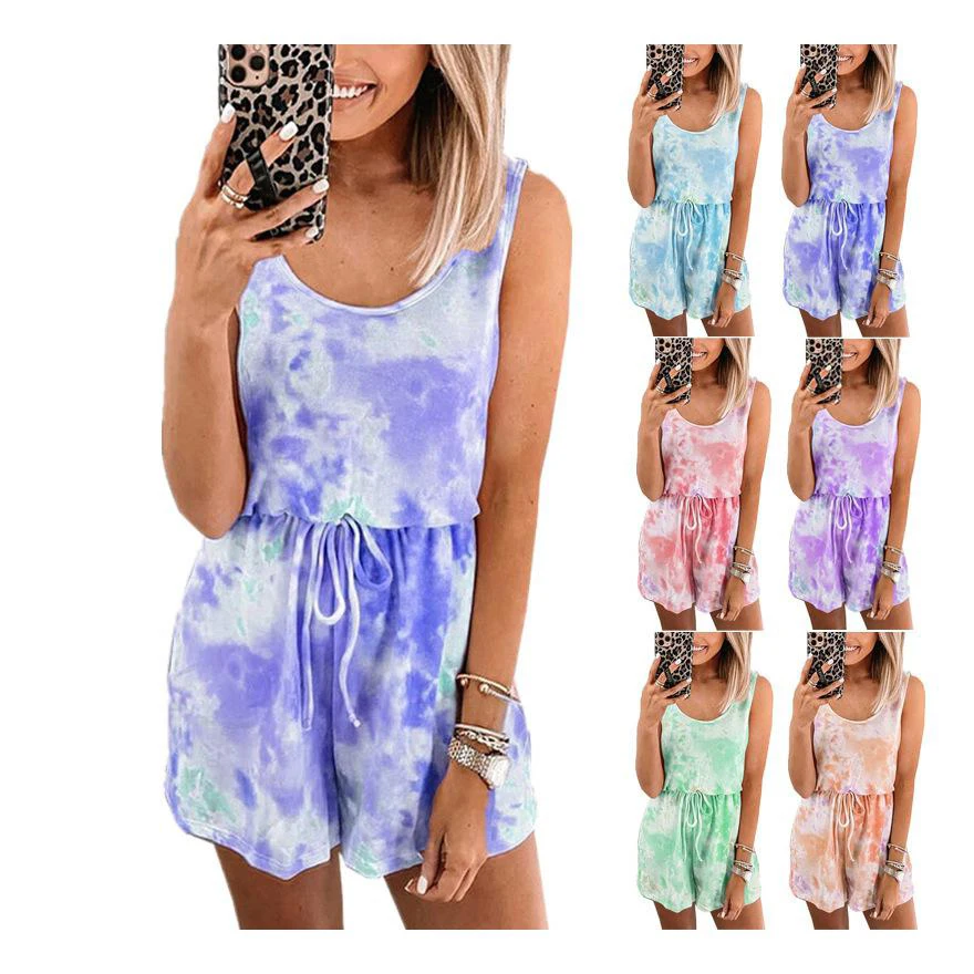 Hot Sale Summer Casual Sleeveless Colored Gradient Jumpsuit For Jumpsuit Women Leisure Tank Top Shorts Tie Dye Jumpsuits Women