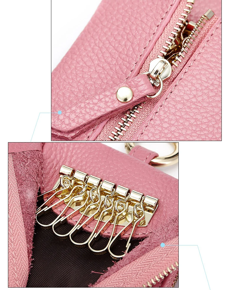 Structure: 6 key chains, 1 change bag and 1 card slot
