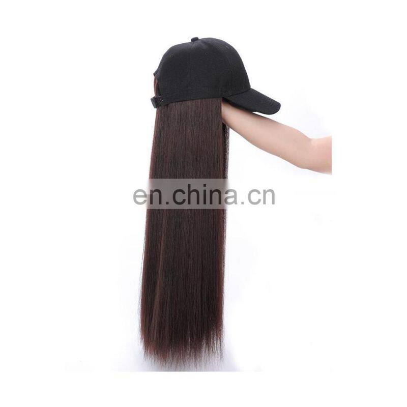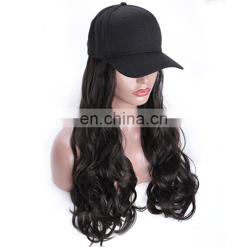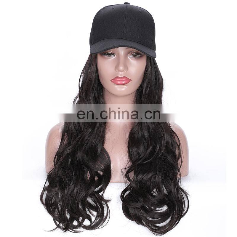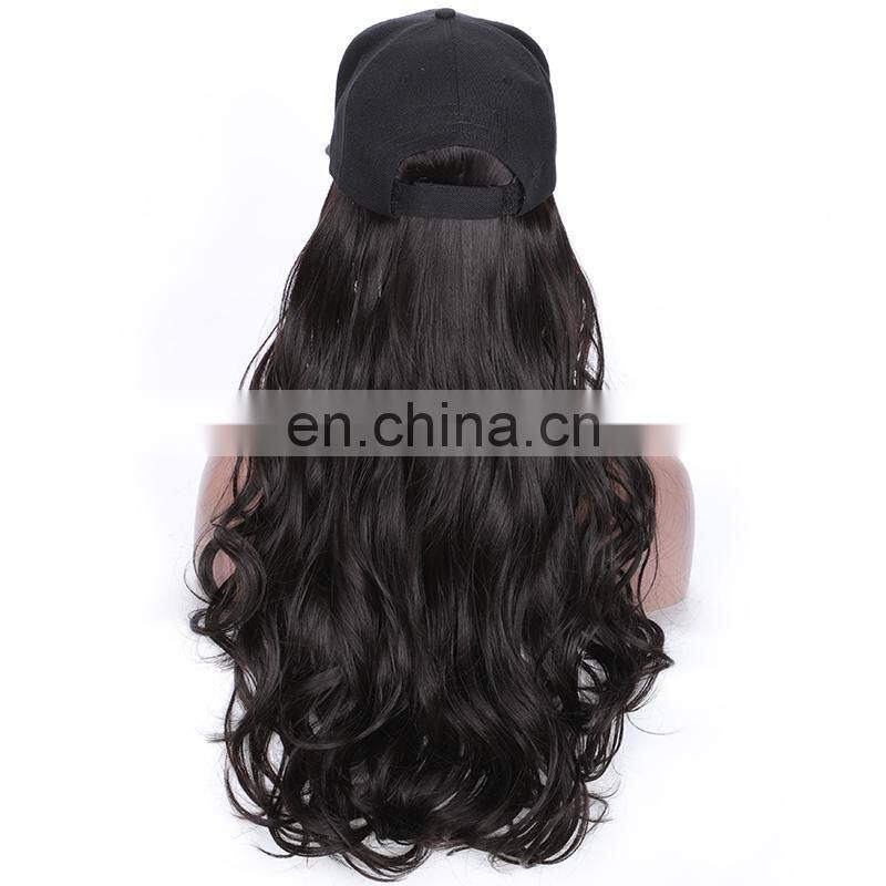 24 Inch Long Wavy Synthetic Hair Wig With Hat Hot Style Black Color For Woman High Temperature
