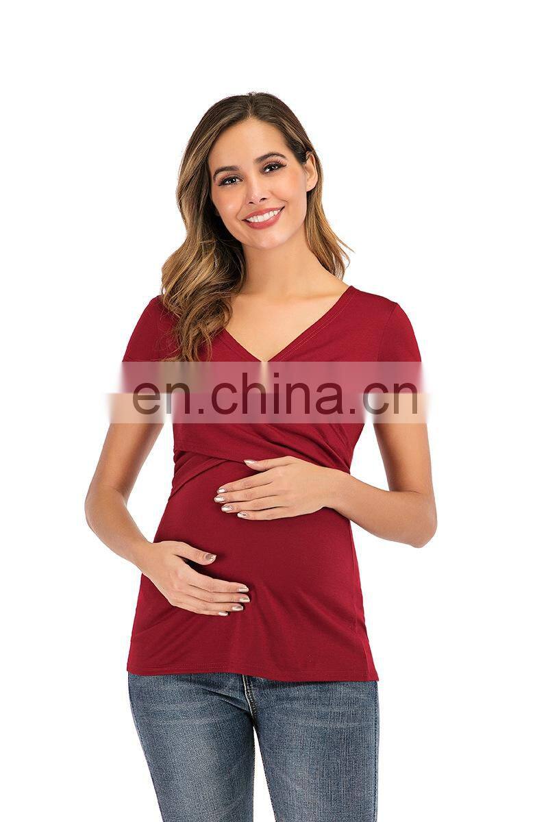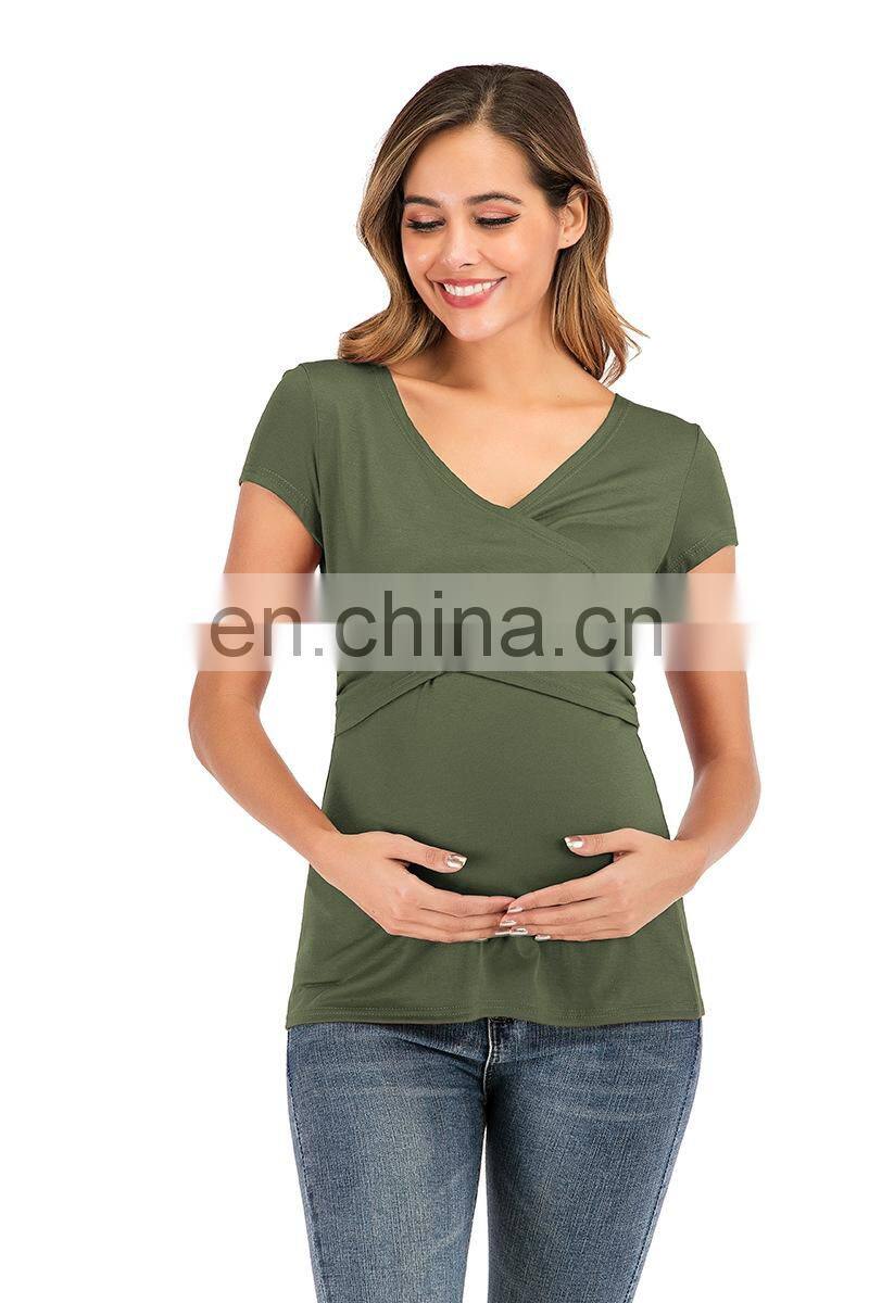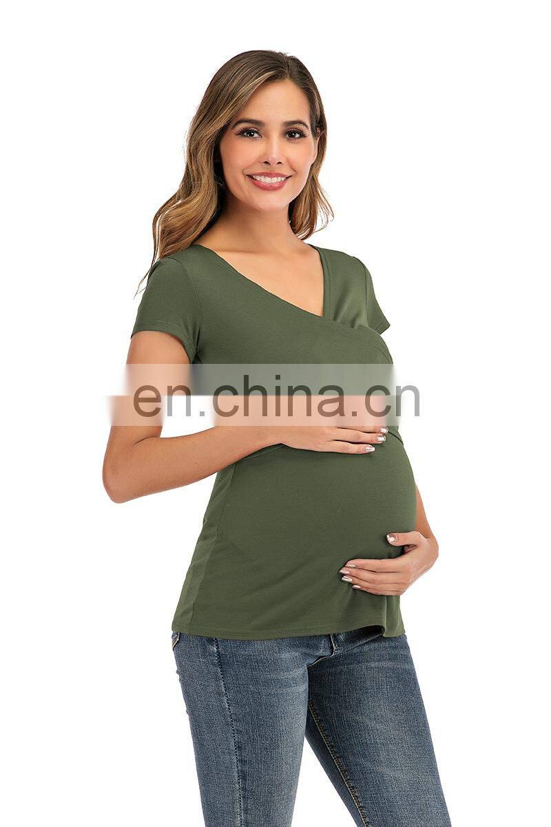 Pregnant Women's Sandal Party Wear Women's Gym Wear Set New Style Short Sleeve Deep V-Neck Solid Color Cross Breast And