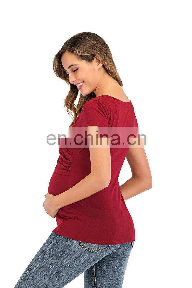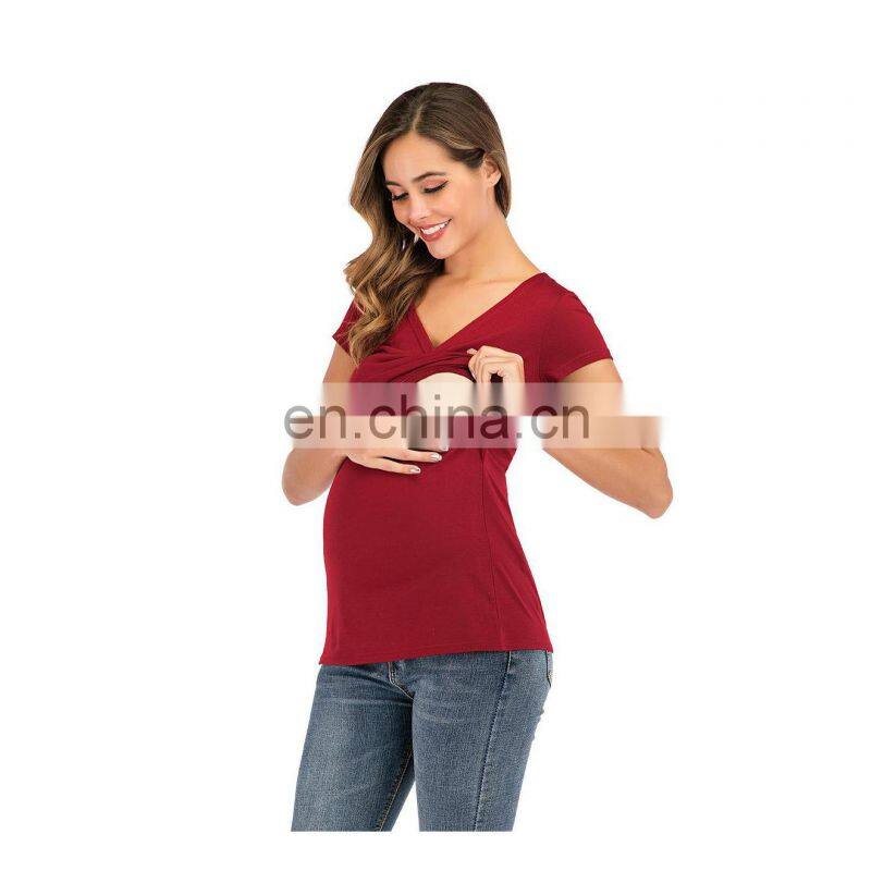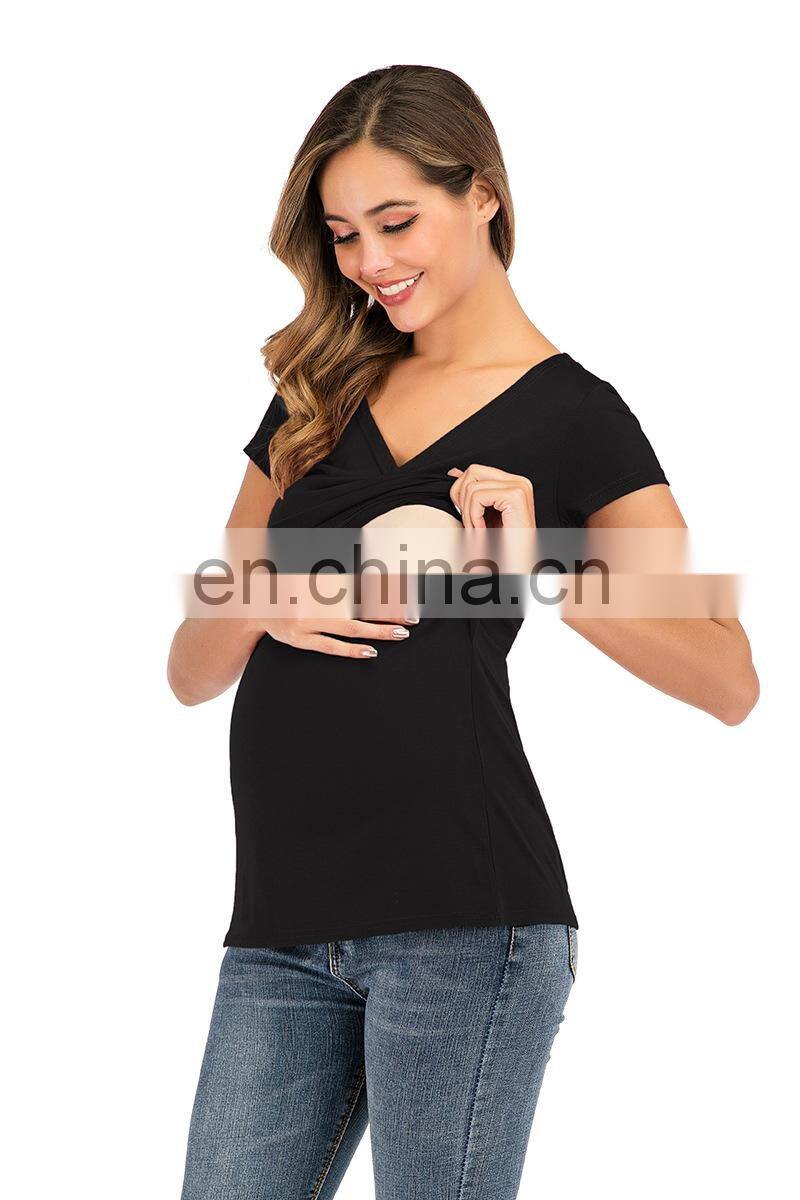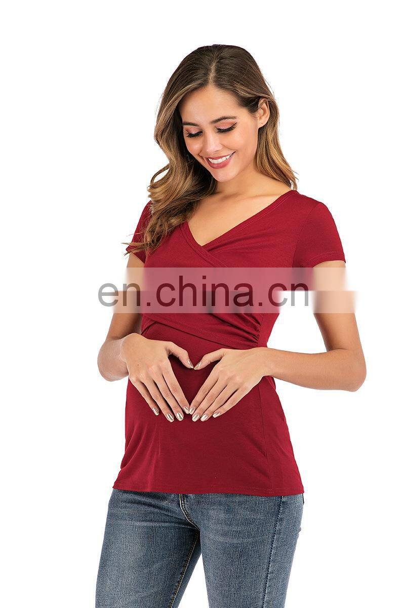 Pregnant Women's Sandal Party Wear Women's Gym Wear Set New Style Short Sleeve Deep V-Neck Solid Color Cross Breast And