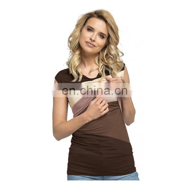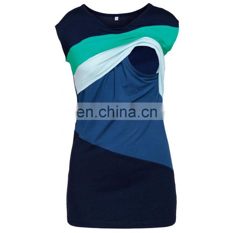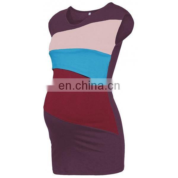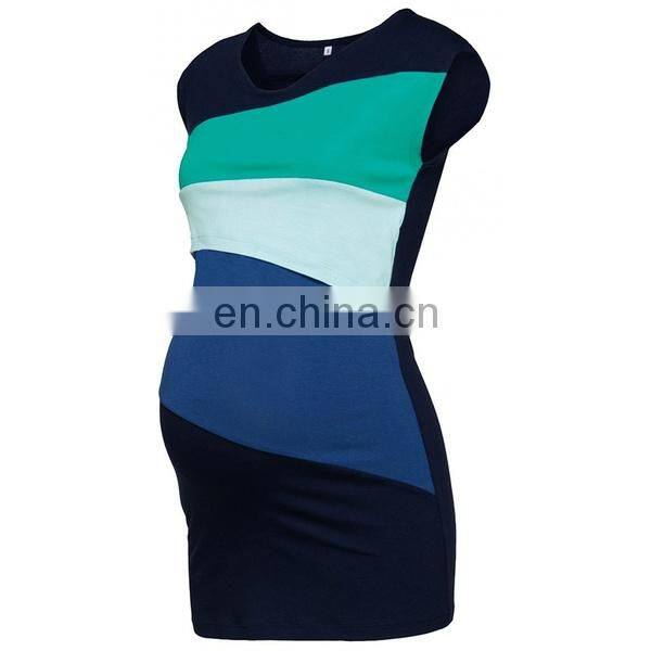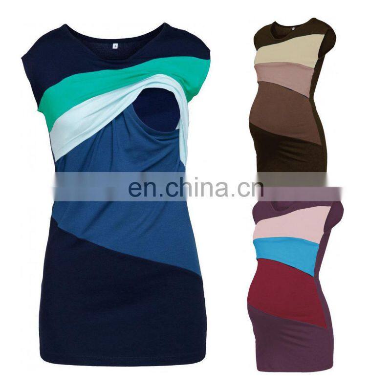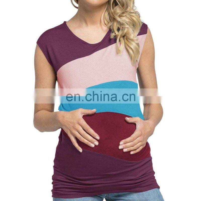 Pregnant Women Sport Sleeveless Top Summer Fashion Short Sleeved Pregnant Casual Tops Top Loose Spell Color Breastfeeding Tops