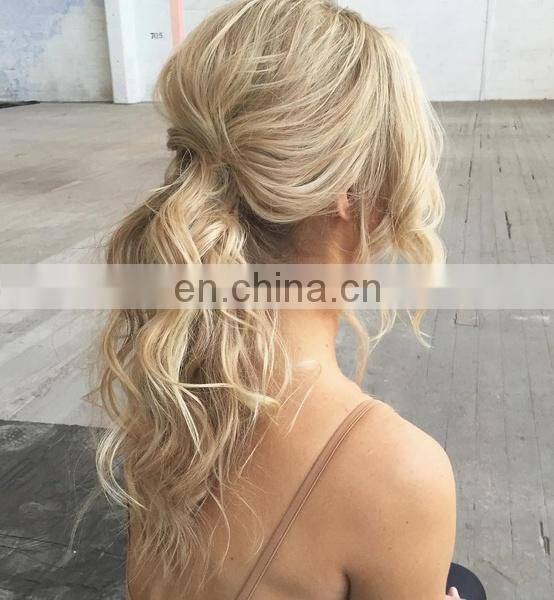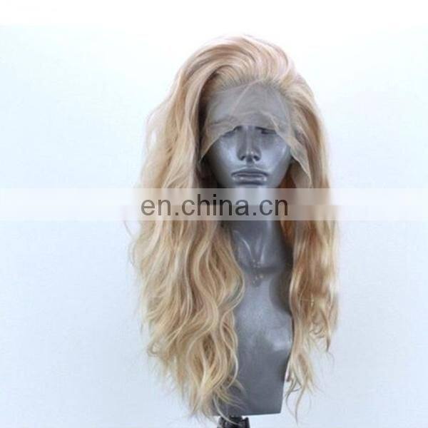14-26 Inch Natural Wavy Blonde Long Wave Wigs Human Hair Lace Front Mix Synthetic Lace Front Wig Heat Resistant Fiber Human Hair