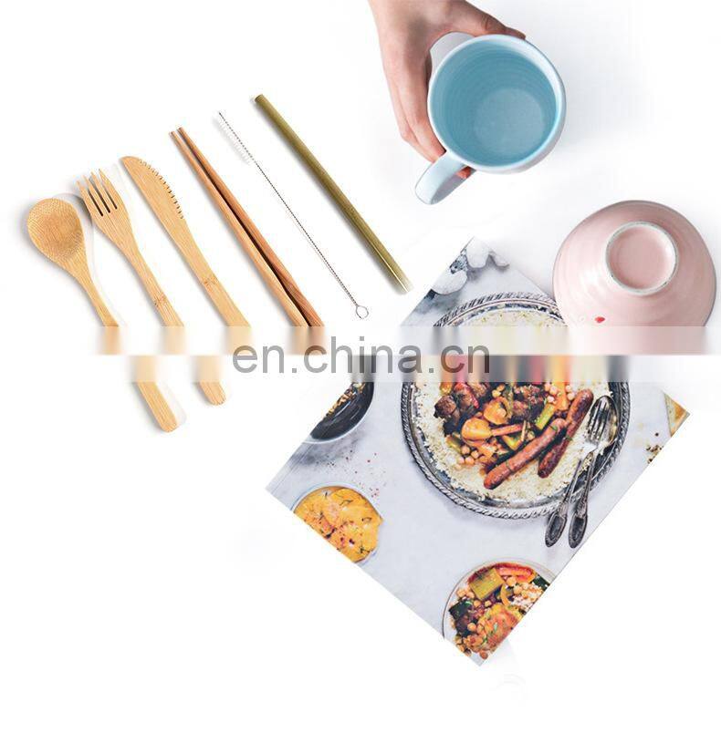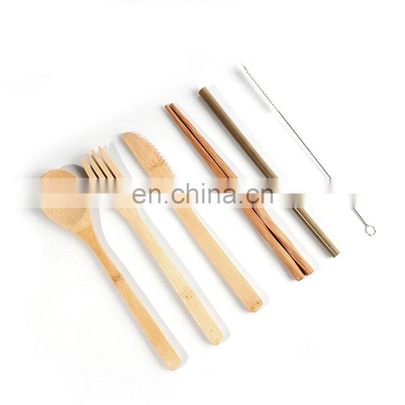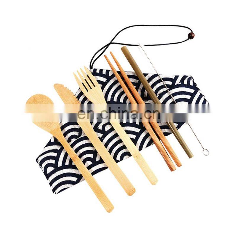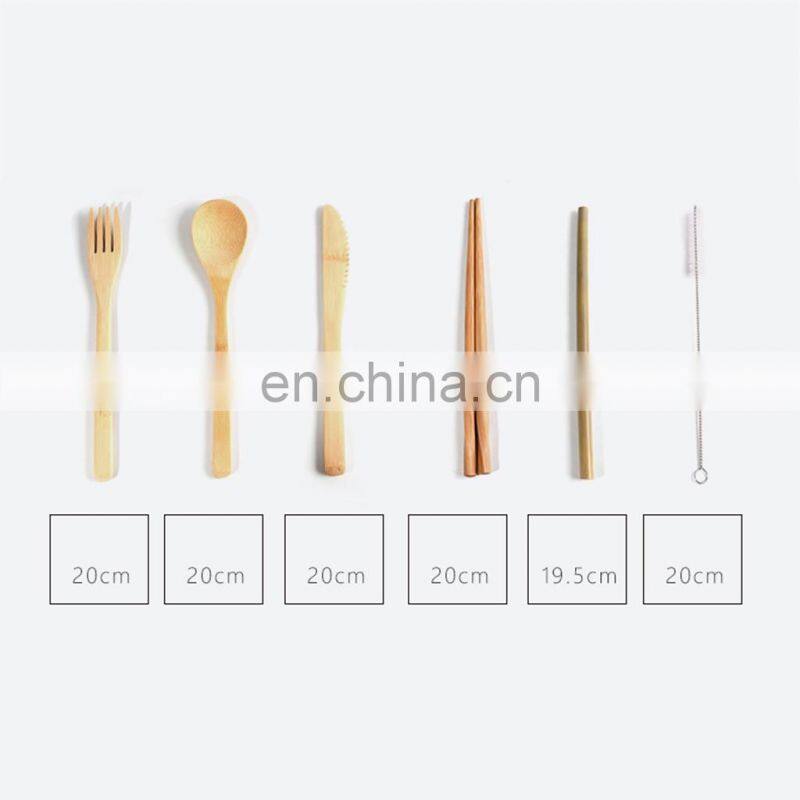 Portable Bamboo Handle Cutlery Travel Eco-Friendly Fork Spoon Set Include Reusable Bamboo Tube Cutlery Slice Fork Spoon Straw