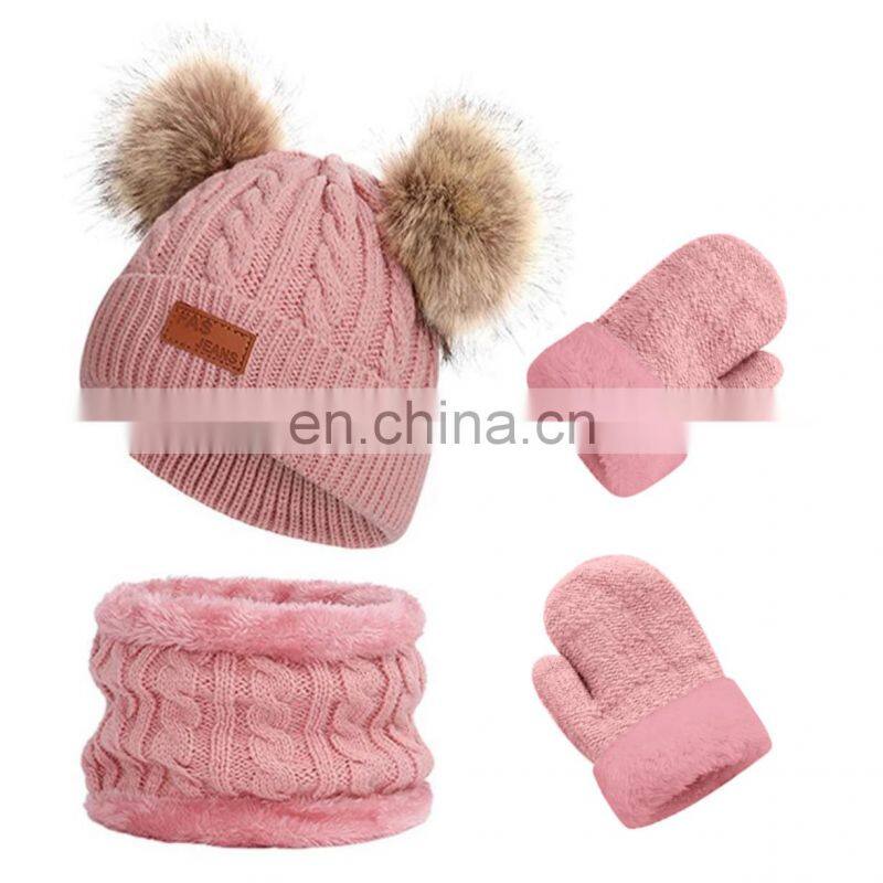 3Pcs Kids Winter Knitted Hat Scarf Gloves Set With Warm Fleece Lined for Children Girls Boys of 1-3 Years