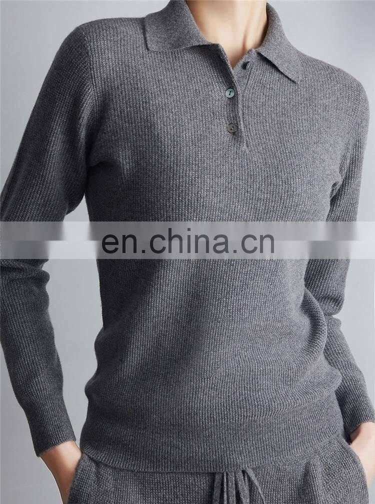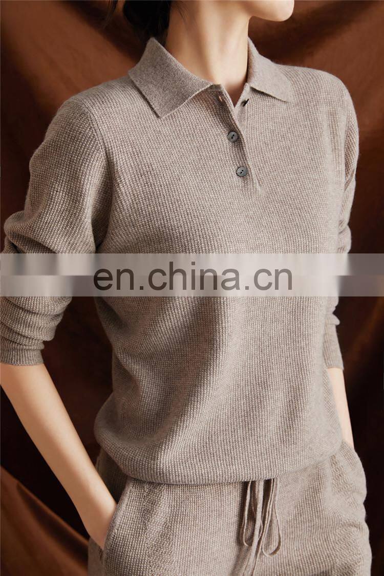 Women Casual Polo Neck Honeycomb Knit Grainy Cashmere Pullover Sweater