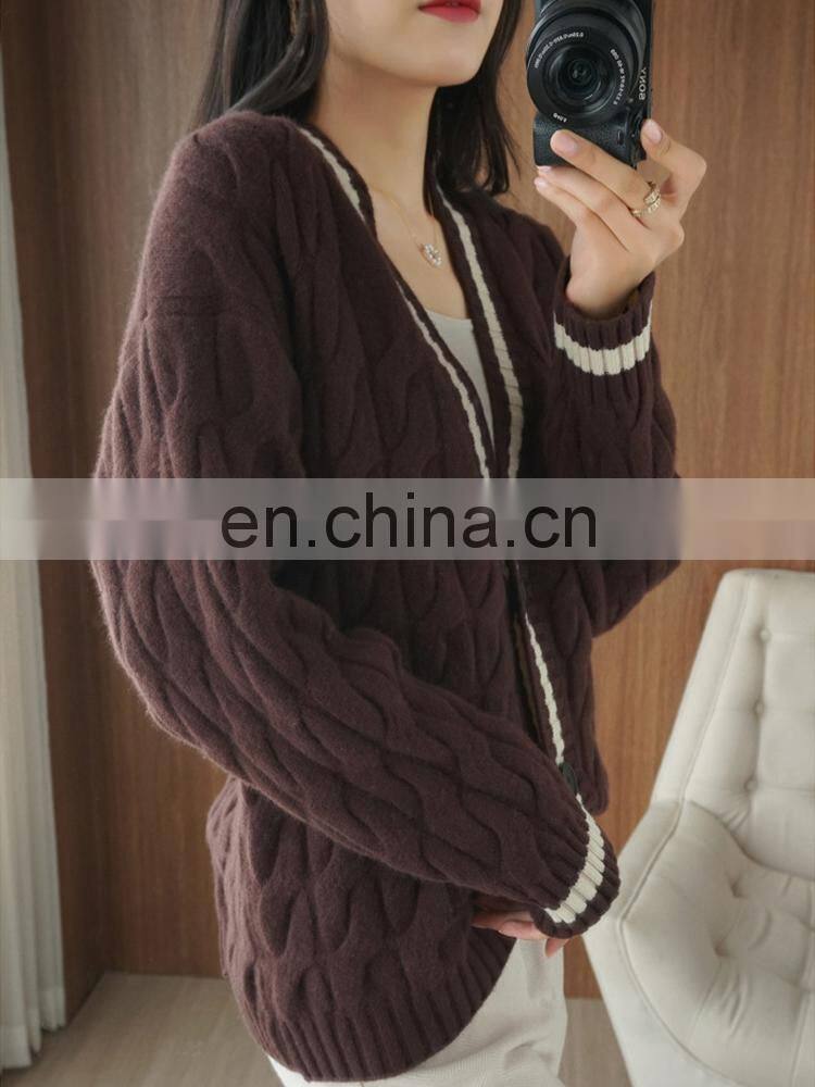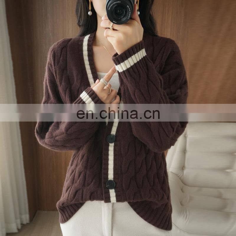 Product Name: | Women Fashion V Neck Plus Size Thick Cable Knit Cardigan Sweater |