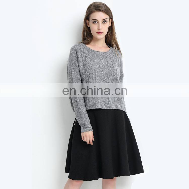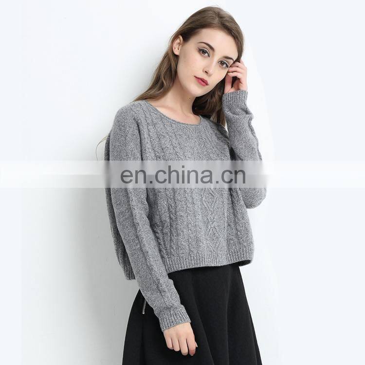 Product Name: | Women Crew Neck Cable Knit Plus Size Gray Pullover Cashmere Wool Thick Sweater |