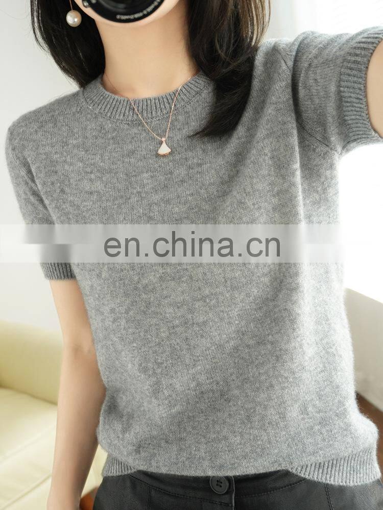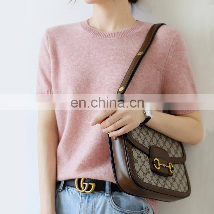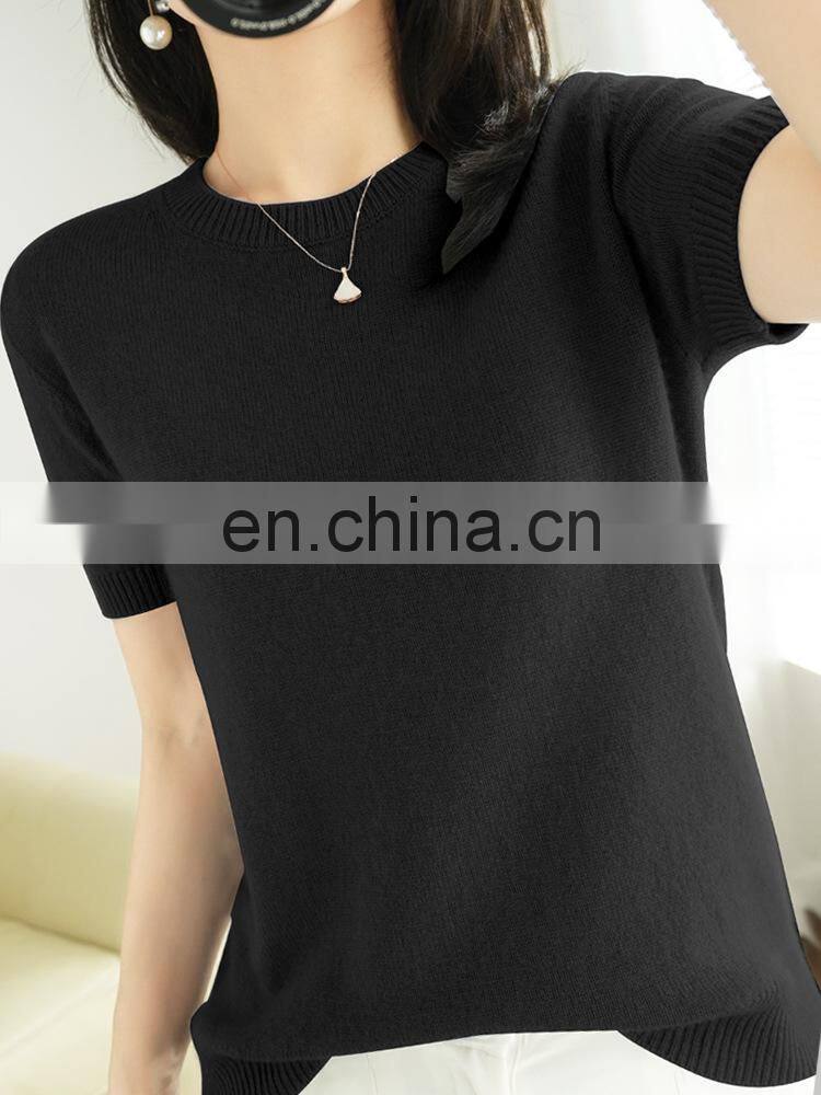 Women's Short Sleeves Pima Cotton Blend Knitted Soft Summer Sweater Tops |