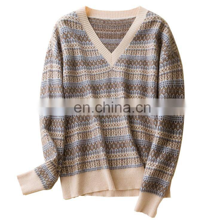 Product Name: | Women Casual V Neck Custom Design Printed Jacquard Cashmere Sweater |