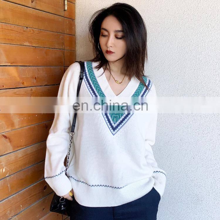Product Name: | Women Casual V Neck Fashion Design Jacquard Knit Loose Cashmere Sweater |