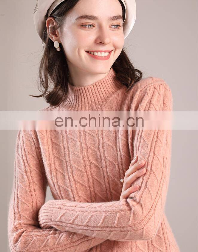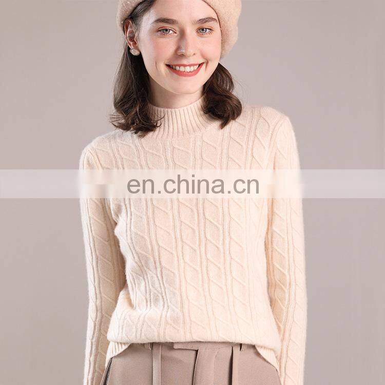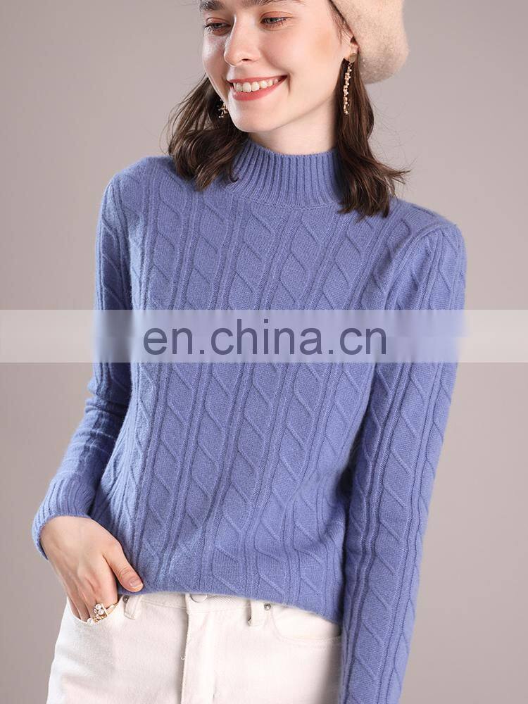 Custom Mock Neck Cable Knit Cashmere Wool Blend Sweater