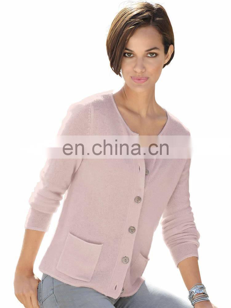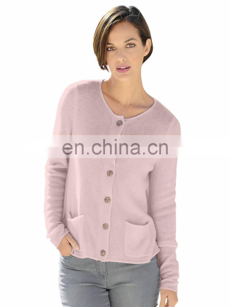 Women's 100% Wool Pink Sweater Cardigan Pockets With Buttons