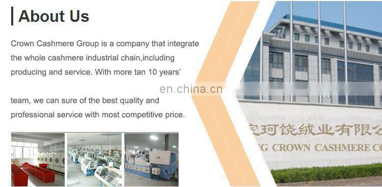 All of our raw material are originated from INNER MONGOLIA which are praised as the "DIAMOND FIBER" by the world uniquely, it renowned for its soften, resilience and color retention.