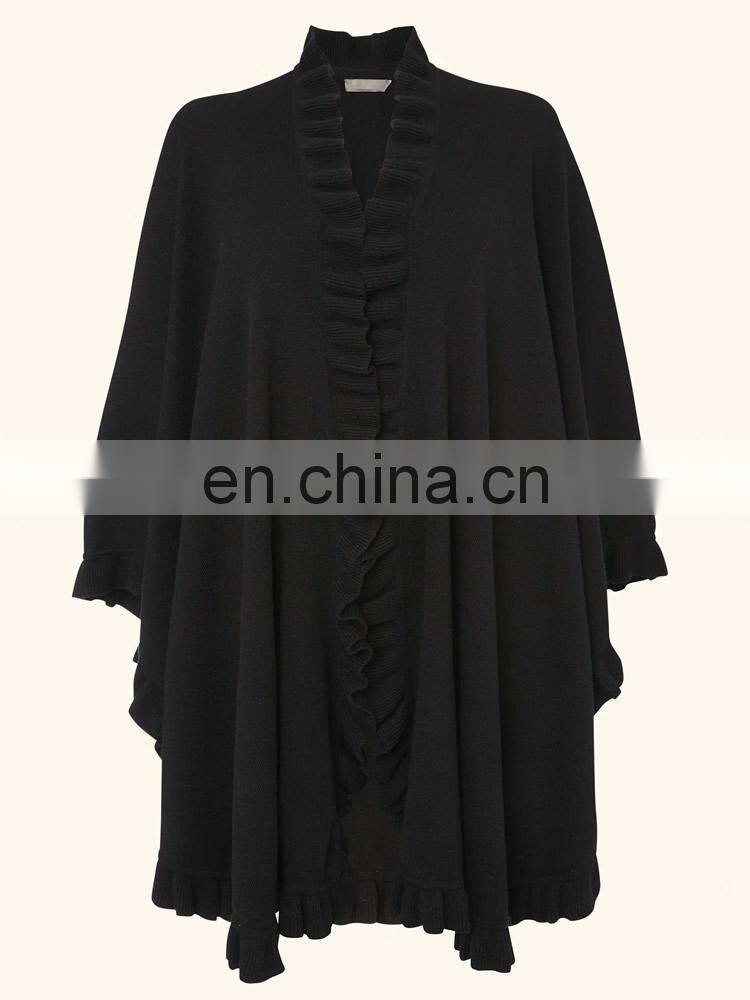 Wholesale Back Cashmere knitting pattern Poncho for women