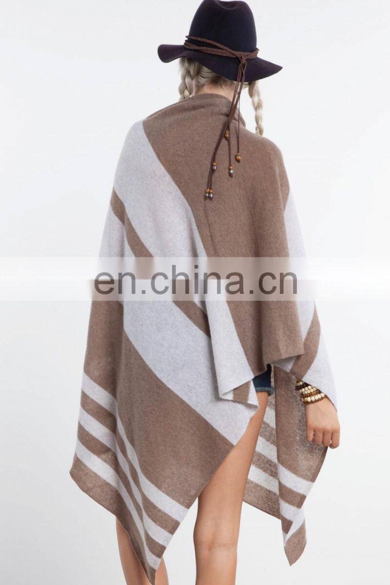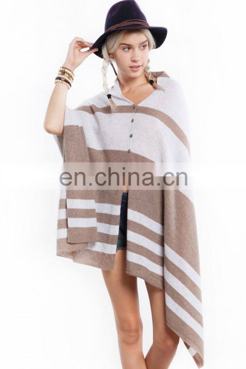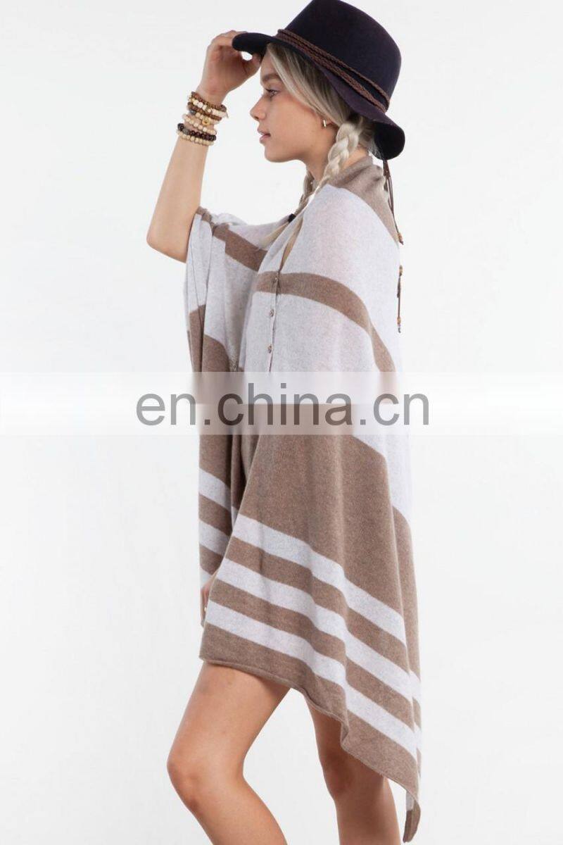 Cashmere Wool Knitted Poncho Shawls With Buttons Stripe Color Block Shawl