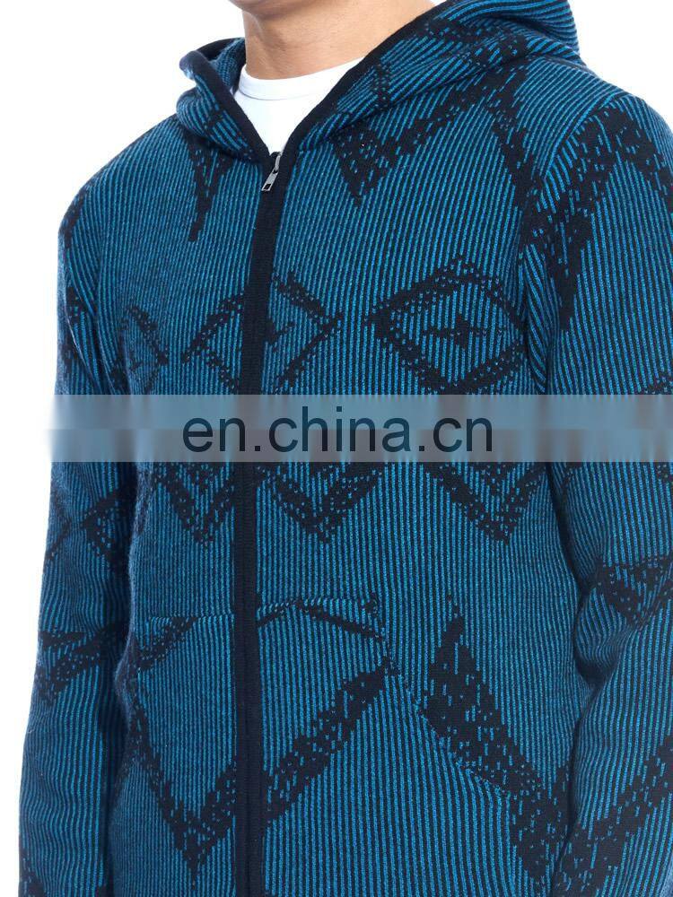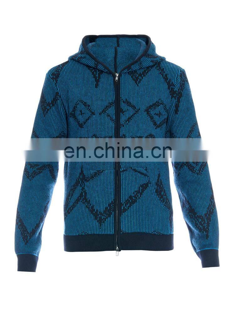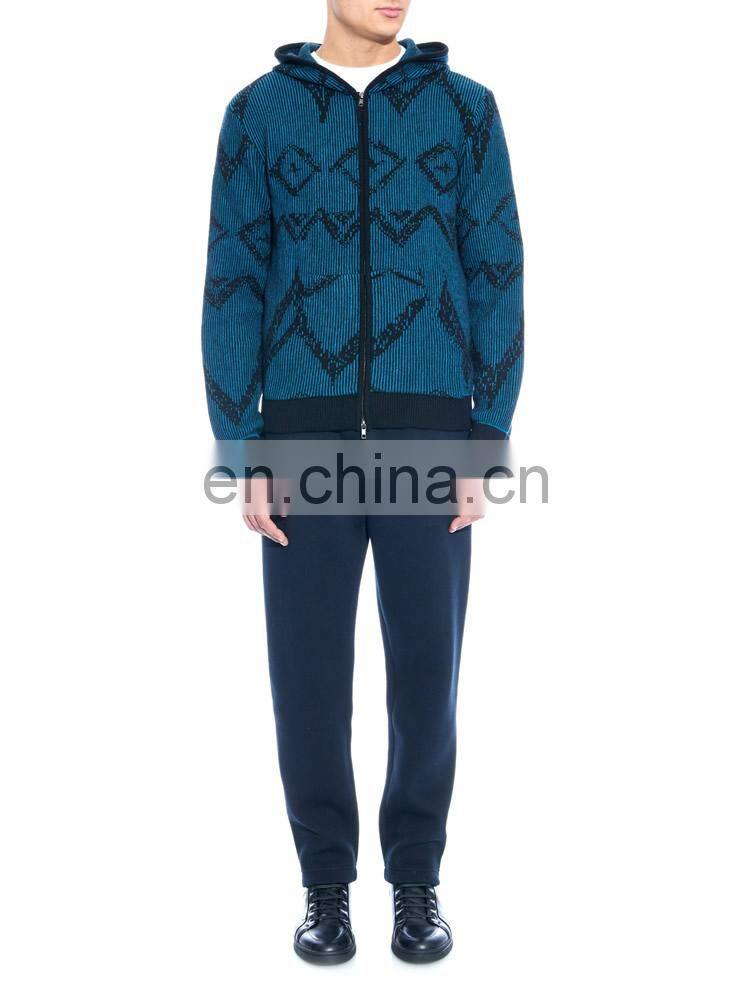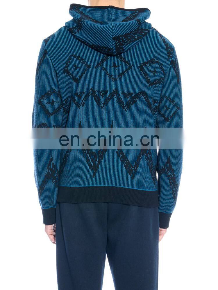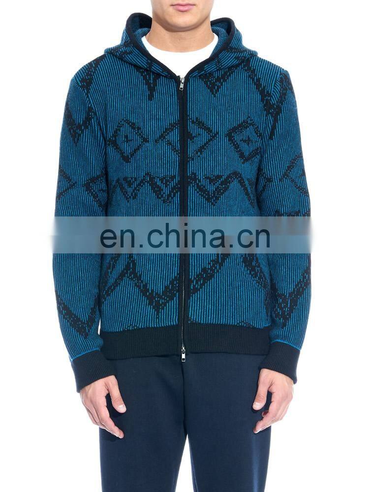 Plain Men Zipper Hoodie Intarsia Cashmere Cardigan