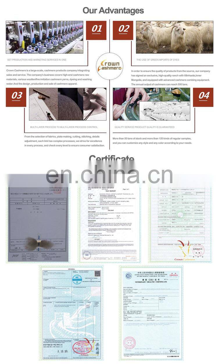 2.Our cashmere and wool materials are all from Inner Mongolia and we have all kinds of commercial test and inspection such as ITS, SGS, INTERTEK, etc.