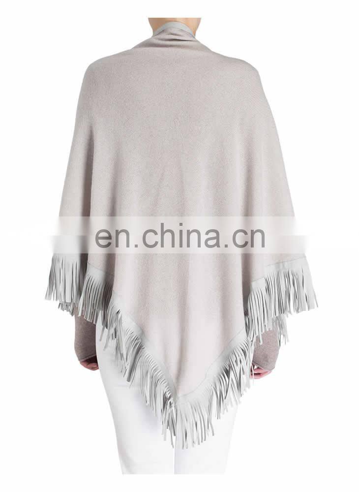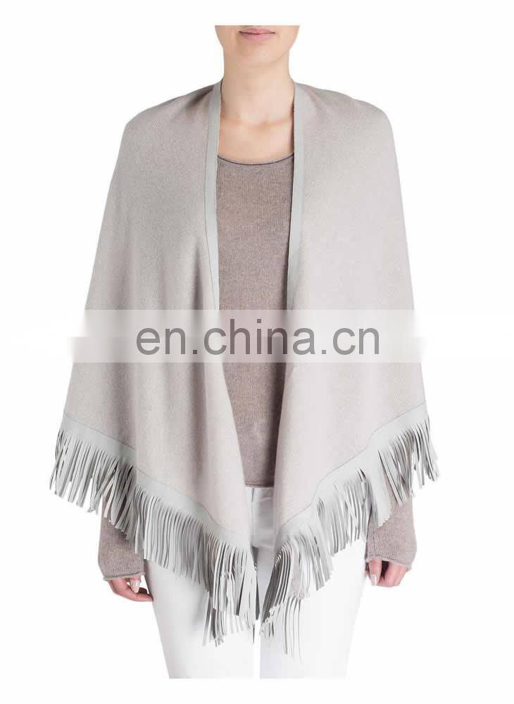 Wholesale Ladies 100% Cashmere Custom Fur Trimmed Poncho and Shawls