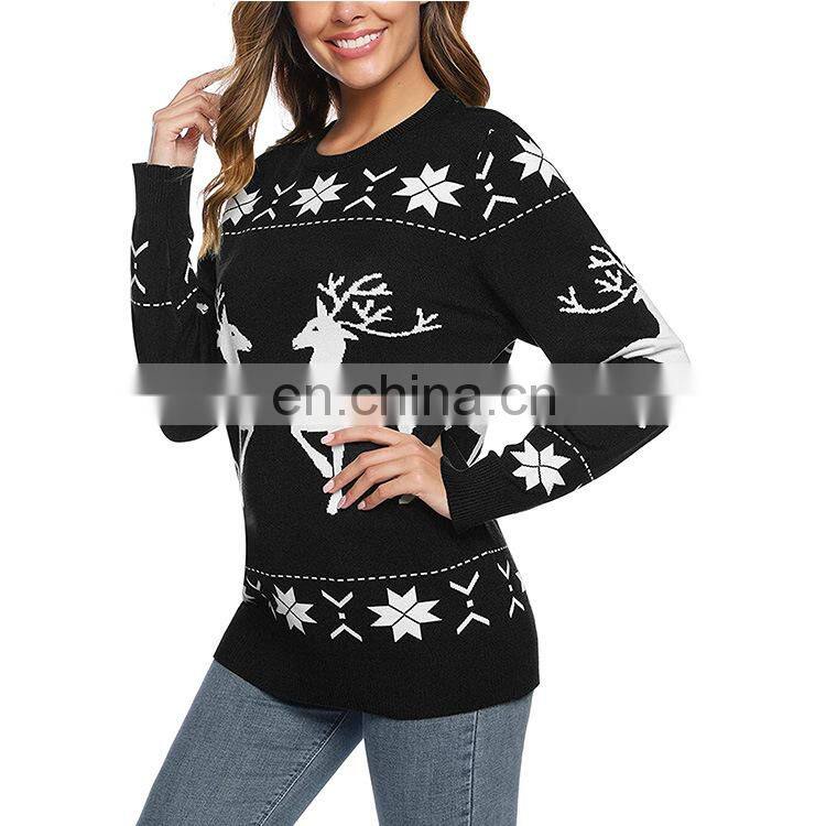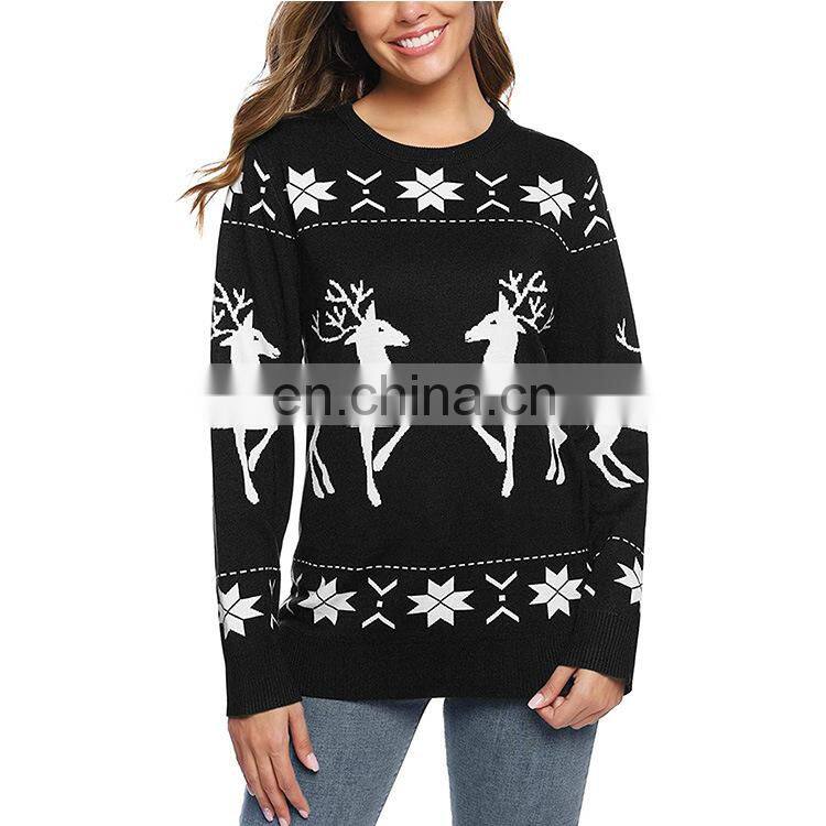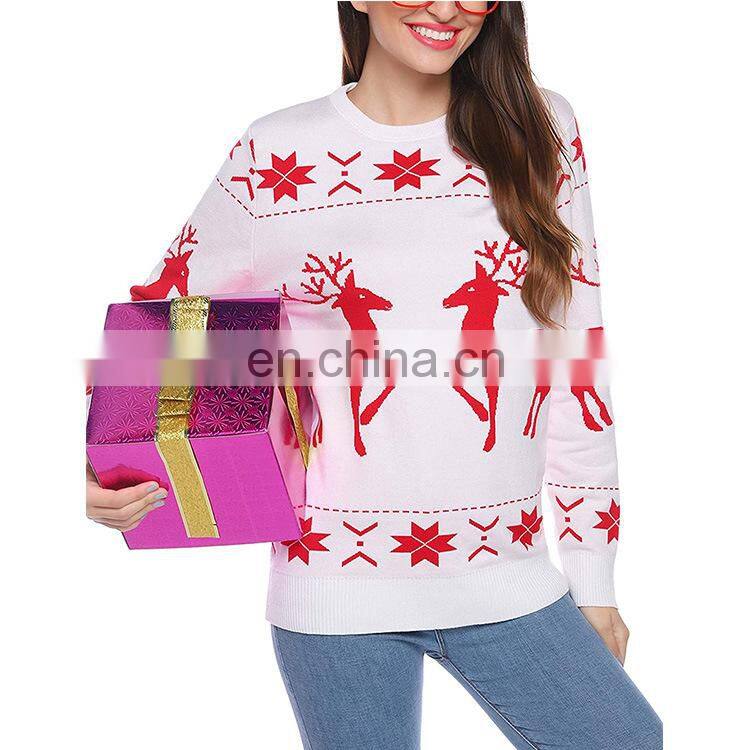 Women's Christmas Knitted Holiday Simplicity Reindeer Pattern Sweater