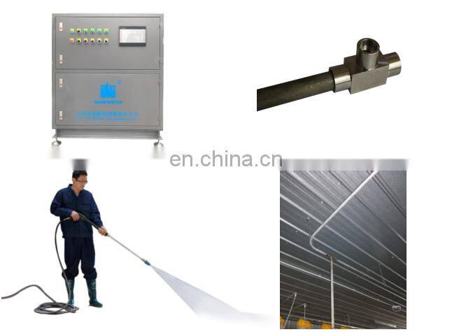 A room should be built in the middle area of the ranch, designated as a high-pressure cleaning system pressure supply room. The control cabinet is placed in the room, when filtered water into the control cabinet, it will raise pressure up to 2900 psi. 304 stainless steel pipes lay in all rooms which need water, equipped with valves of each water point, realize the linkage of whole system.