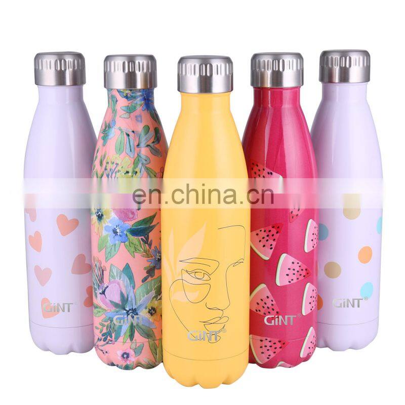 Gint Water Transfer Finishing Stainless Steel Drink Bottle Low MOQ Popular Cola Shape Customized Color Water Juice Coffee Bottle