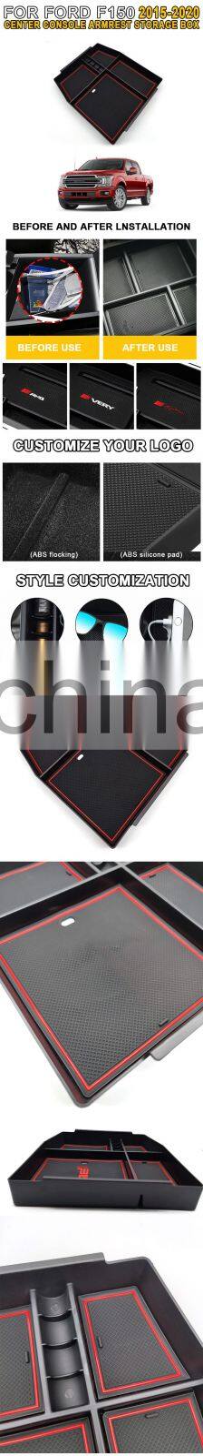 Interior Accessories Parts Silicone Armrest Rest Storage Box Center Control Console Organizer Tray For Ford F150 2015-2020