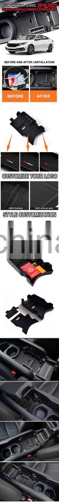 Interior Accessories Parts Silicone Armrest Rest Storage Box Center Control Console Organizer Tray For Honda Civic 2016-2021