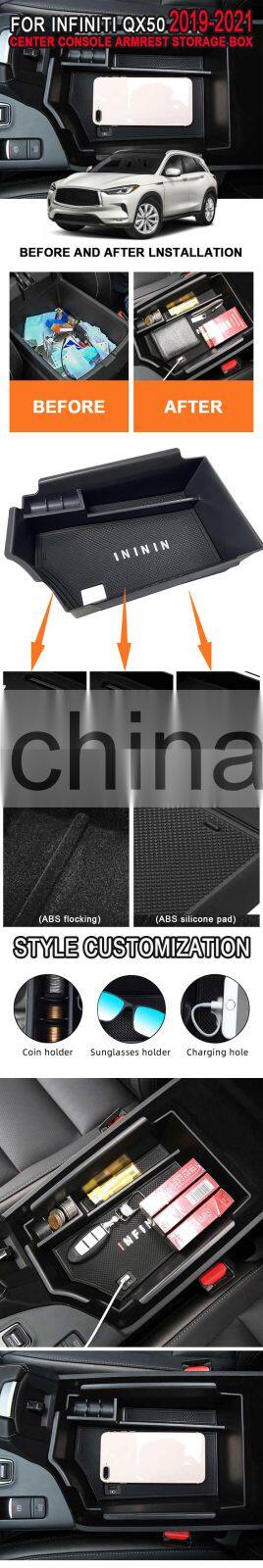 Interior Accessories Parts Silicone Armrest Rest Storage Box Center Control Console Organizer Tray For Infiniti Qx50 2019-2021