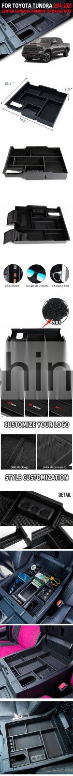 Interior Accessories Parts Silicone Armrest Rest Storage Box Center Control Console Organizer Tray For Toyota Tundra 2014-2021