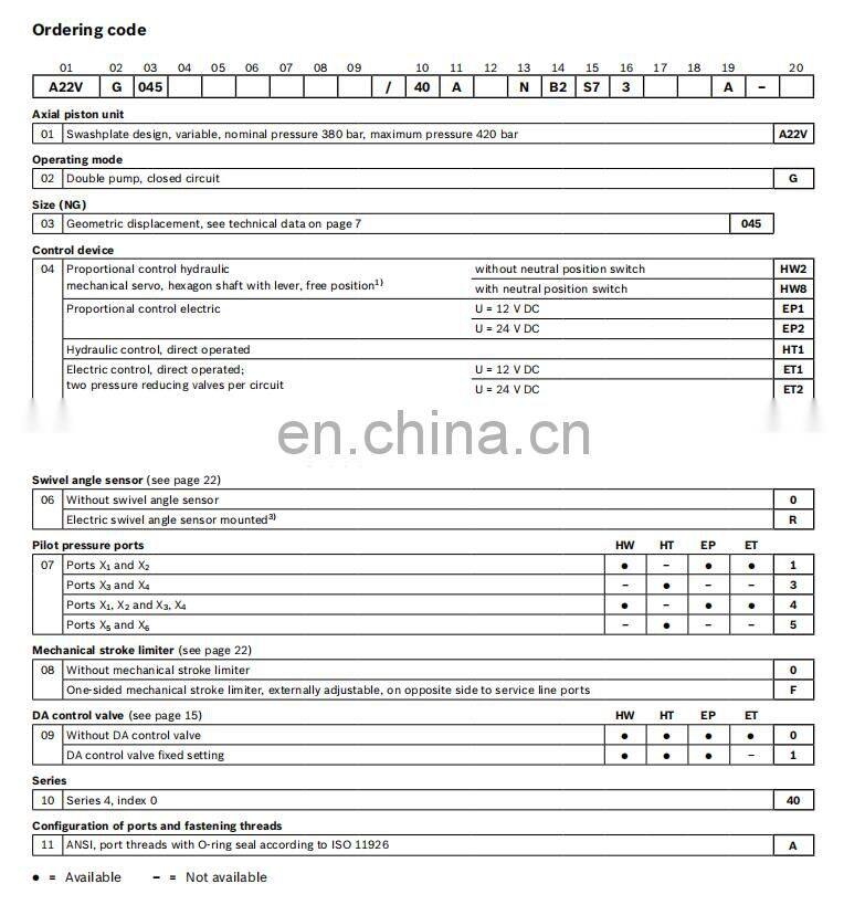 Rexroth A21VG A22VG A24VG A30VG A22VG045 Hydraulic Axial Piston Variable Double Pump A22VG045HT1005M1/40B-RNB2S73FB2S4A-Y