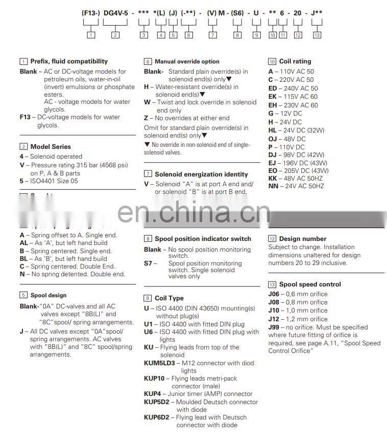 EATON VICKERS DG4V-5-6CJ-M-U-H6-20 DG4V-5-2N-M-U-A6-20 DG4V-5-2C-M-U-C6-20 Hydraulic Solenoid Valve