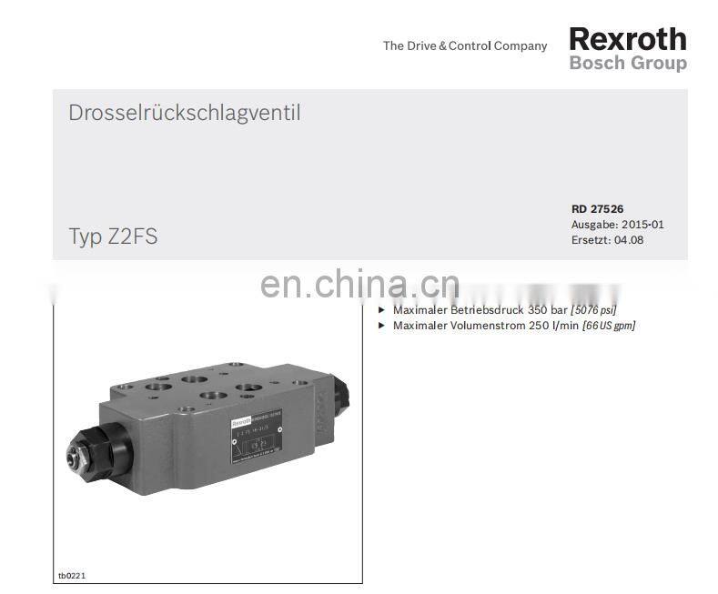 Rexroth Z2FS-6 Z2FS-10 Z2FS-16 Z2FS-22 Series Hydraulic Throttle Relief Valve Z2FS16-31/S2