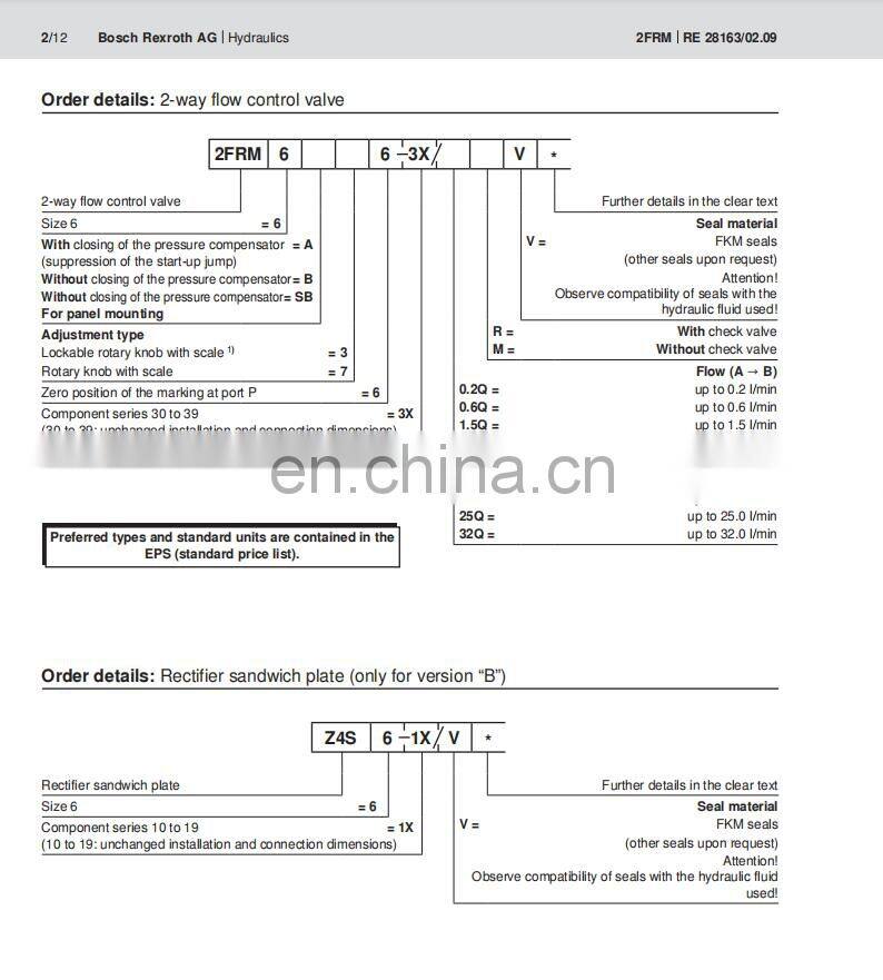Rexroth 2FRM 6 A36/B36/SB36/A76/B76/SB76-3X 2FRM6 Series 2-way Flow Control Valve 2FRM 6 B36-33/0.20MV