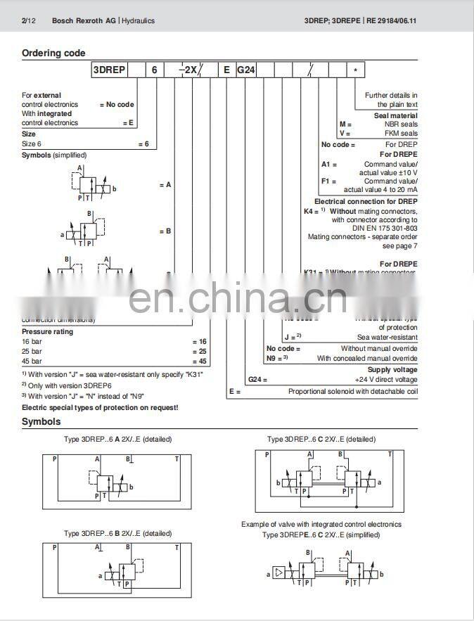 Rexroth 3DREPE 3DREPE6 3DREPE6C series Proportional pressure reducing valve 3DREPE 6C -21-25EG24N9K31/F1M=00
