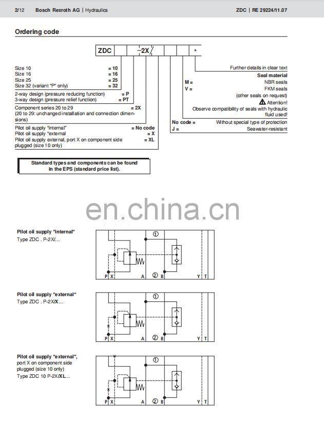 Home > Products > Solenoid Valve > Rexroth ZDC ZDC10 ZDC16 ZDC25 ZDC32 ZDC16P ZDC25P ZDC32P Meter-in Pressure Compensator, Direct Operated ZDC-32-P-22/M