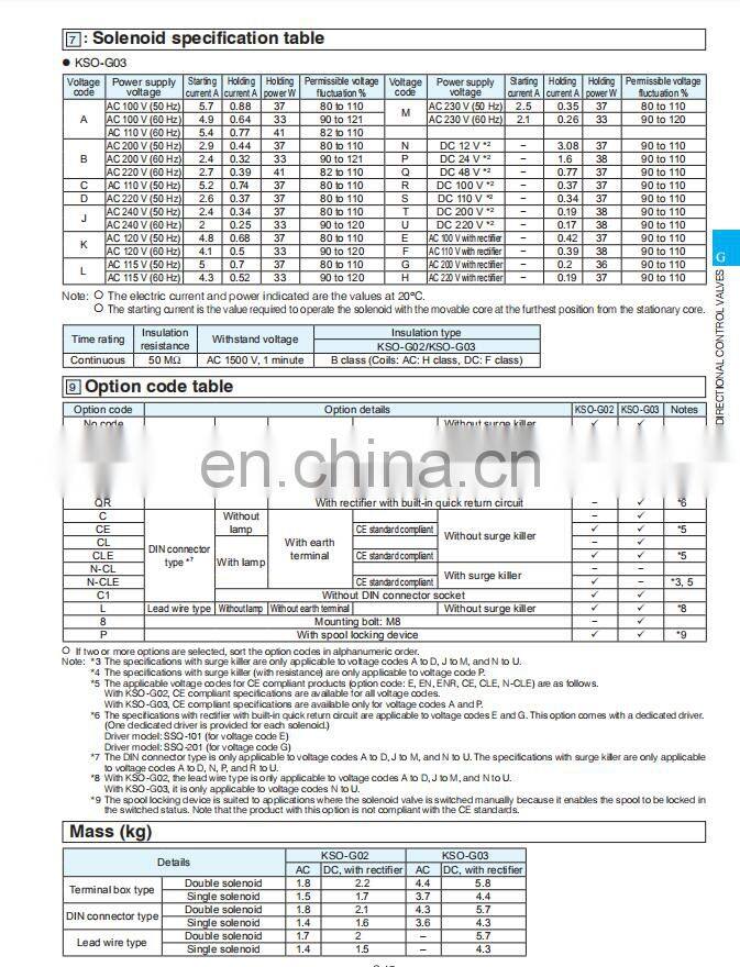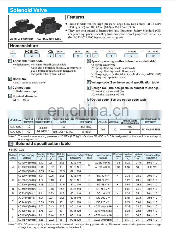 DAI-KIN KSO-G02-2NP-30-E Hydraulic solenoid valve KSO-G02/G03-2DA/2DB/2DC/2DD/2DP-30/20/10-E/N series