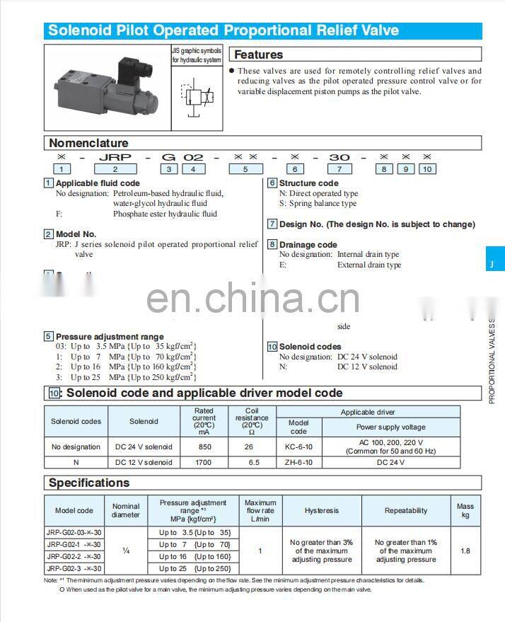 Home > Products > Solenoid Valve > Trade Assurance JRP-G02-03/1/2/3-N/S-20 Series Hydraulic Solenoid Pilot Operated Proportional Relief Valve JRP-G02-2-23