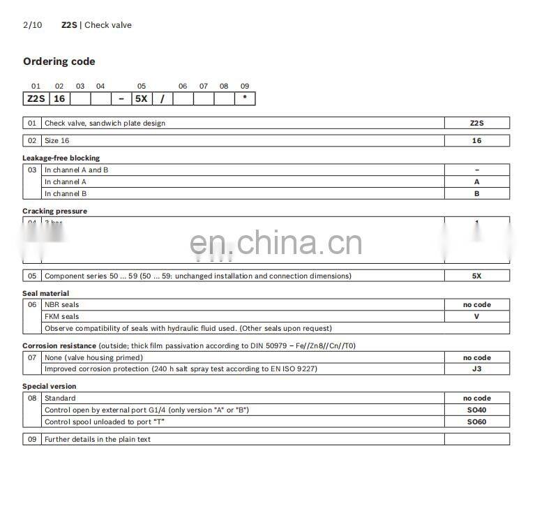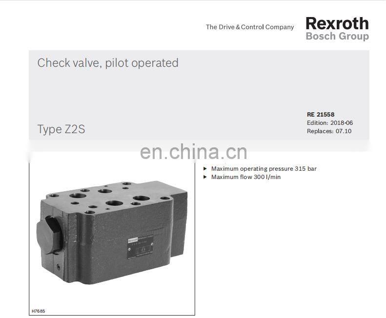 Rexroth Z2S Z2S16 Z2S16A Z2S16B series hydraulic Check valve, pilot operated Z2S16A2-5X