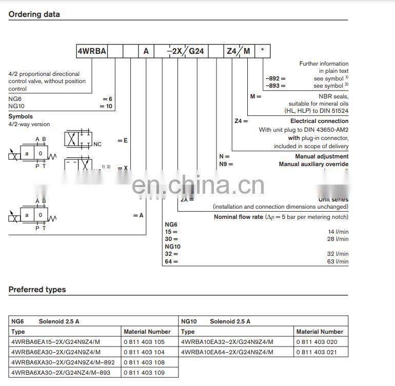 Rexroth 4WRBA 4WRBA6 4WRBA10 4WRBA6W15 Hydraulic Directional Control Valve 4WRBA 6 W15-2X/G24N9Z4/M