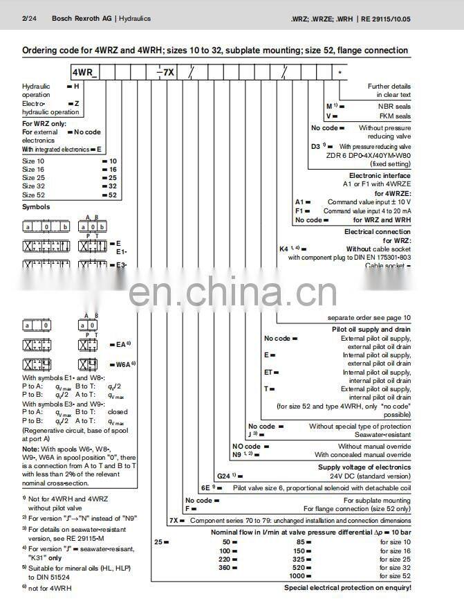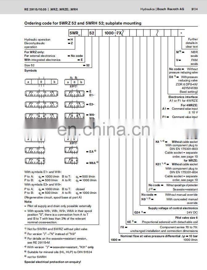 Rexroth 4WRZ25E270-3X/6A24N9K4 proportional directional pilot operated valves 4WRH 4WRZ10 4WRZ16 4WRZ25 4WRZ32 4WRZ52 series