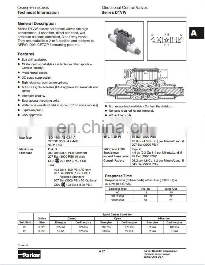 Parker D1V D1VW D1VHW D1VHW001 D1VHW020 001 002 004 009 020 030-082 Series Hydraulic Valve D1VW001CNJW91