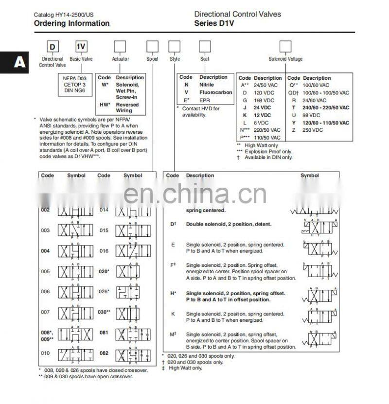 Parker D1V D1VW D1VHW D1VHW001 D1VHW020 001 002 004 009 020 030-082 series hydraulic valve D1VW001CNJW91