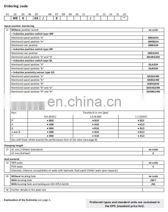 Rexroth 4WE6R6X 4WE6H6X 4WE6G6X 4WE6E6X Hydraulic Solenoid Directional Spool Valves 4WE6R6X/EG24N9K4