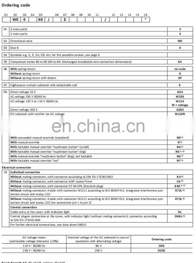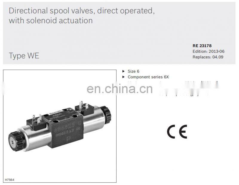 Rexroth 4WE6D6X 4WE6G6X 4WE6E6X 4WE6J6X Hydraulic Solenoid Directional Spool Valves 4WE6H6X/EW230N9K4
