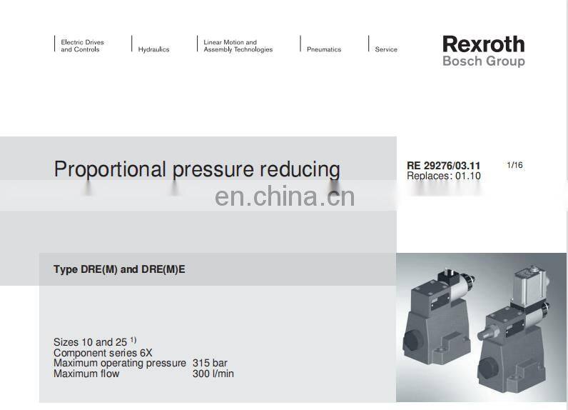 Home > Products > Solenoid Valve > Rexroth DREM-10/20 DREM10 DREM20 Hydraulic Proportional Pressure Reducing Valve DREM10-30/200YM