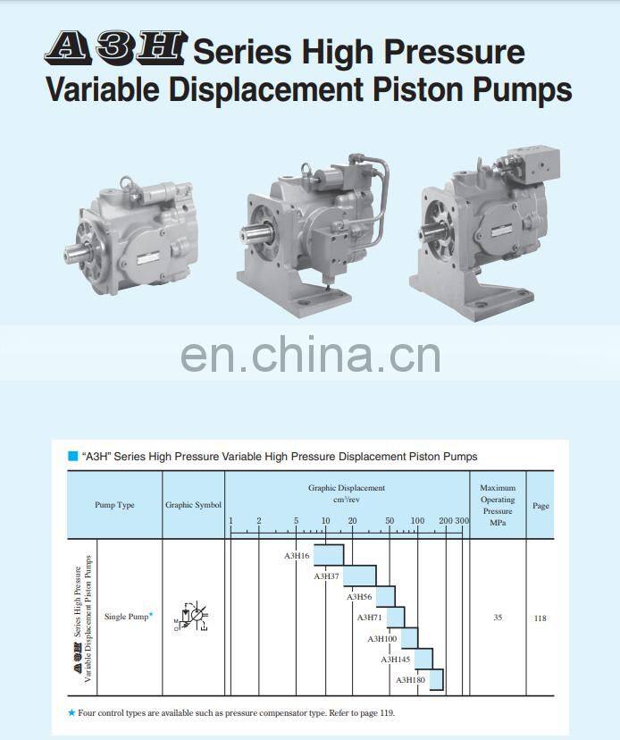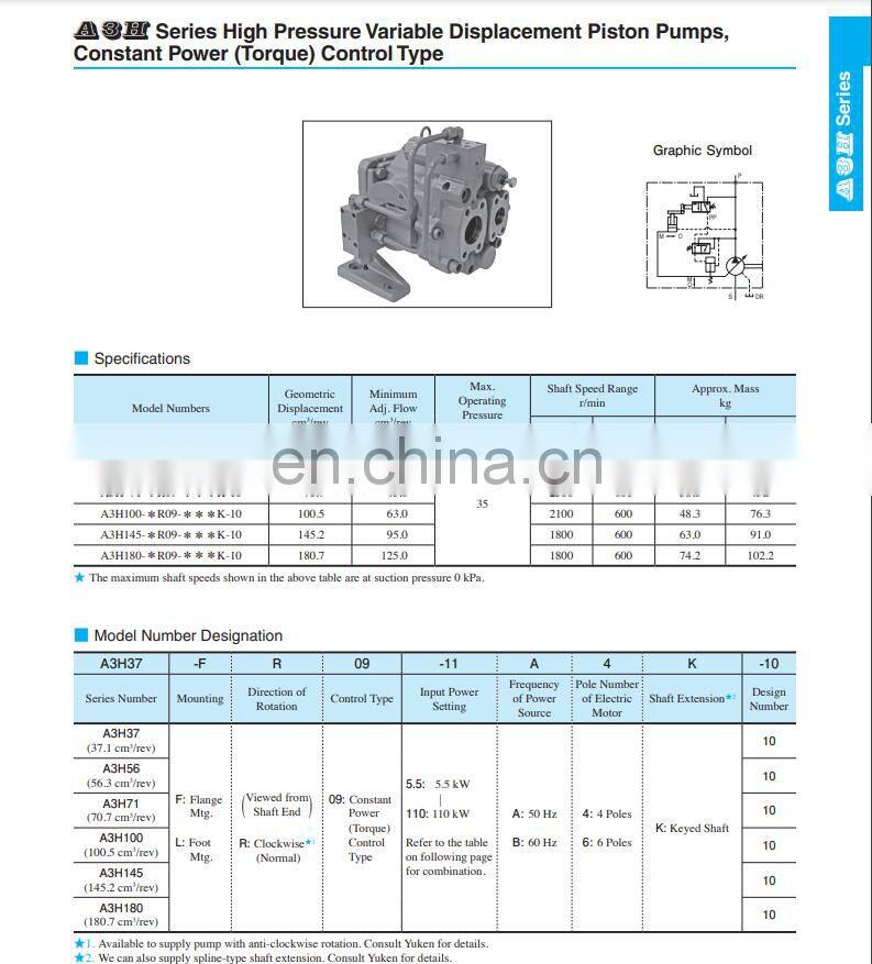 YUKEN A3H37/A3H56/A3H71/A3H100/A3H145/A3H180-FR09/LR09-5.5A4K/11A4K Variable Displacement Piston Pump A3H180-FR09-55A4K-10
